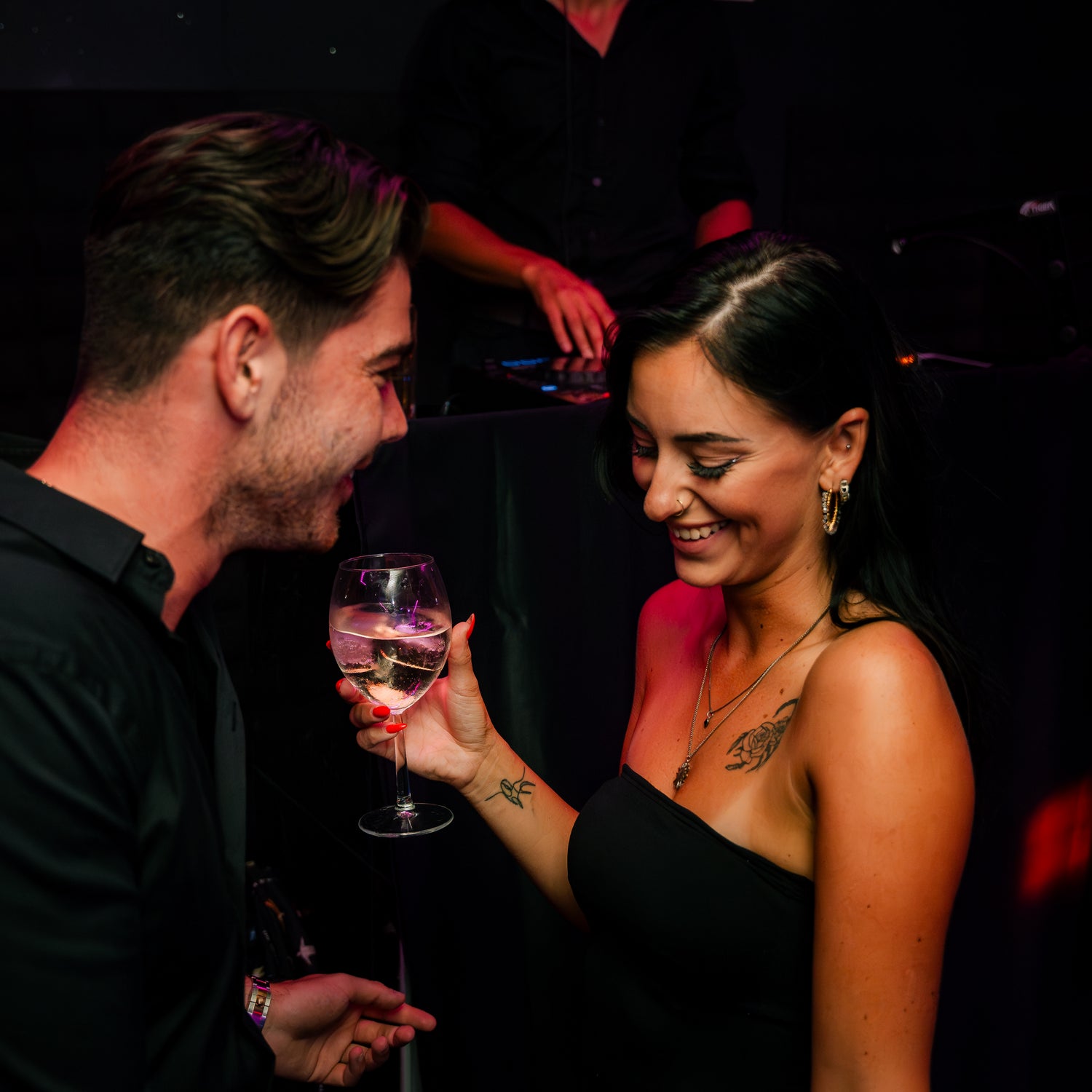 The pink W represents the cherry flavour of the gin based WATTSHOT shot.